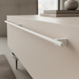 Úchytka GUANA v provedení bílá matná přináší do interiéru čistotu, eleganci a moderní designový akcent. Díky mimořádně štíhlému profilu působí odlehčeně a stylově, přičemž dokonale ladí se světlými i barevnými dekory nábytku. Dostupná je v šesti délkách, včetně extra dlouhých variant, které jsou ideální pro šatníkové skříně a vysoké dveře.