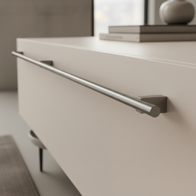 Úchytka GUANA v provedení matný chrom spojuje elegantní kovový vzhled s minimalistickým tvarem. Působí moderně, čistě a univerzálně – perfektně ladí se světlými i tmavými dekory nábytku. Díky velmi štíhlému profilu vypadá mimořádně sofistikovaně a je ideální volbou pro šatní skříně, vestavěné skříně či vysoké kuchyňské dveře.