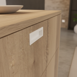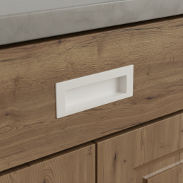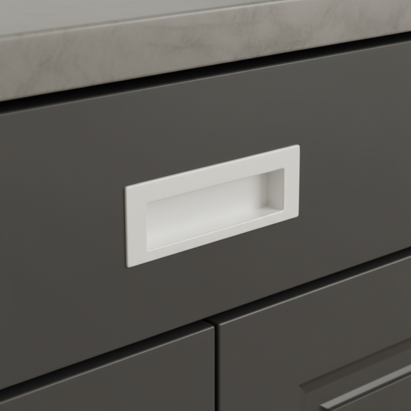 Elegantní minimalistická úchytka určená pro zafrézování do plochy dvířek nebo zásuvek. V bílém matném provedení působí čistým, harmonickým a moderním dojmem, ideální pro světlé interiéry a skandinávský styl.