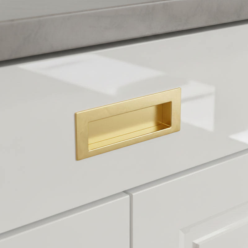 Elegantní minimalistická úchytka určená pro zafrézování do plochy dvířek nebo zásuvek. Lesklé zlaté provedení působí luxusně a moderně, díky čemuž je ideální volbou pro prémiové interiéry, designové kuchyně a vysoce kvalitní nábytek.