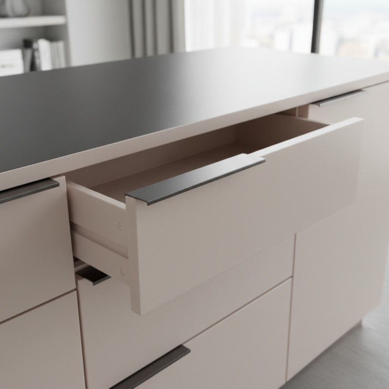 Úchytka má velmi tenký profil, což zajišťuje komfortní používání bez rušivého vizuálního efektu na nábytku.