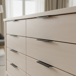 Elegantní minimalistická úchytka navržená pro montáž na horní hranu dvířek nebo zásuvek. V černém broušeném provedení působí moderně, nadčasově a dokonale zapadne do interiérů, kde dominuje čistý design a rovné linie.