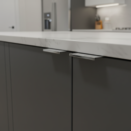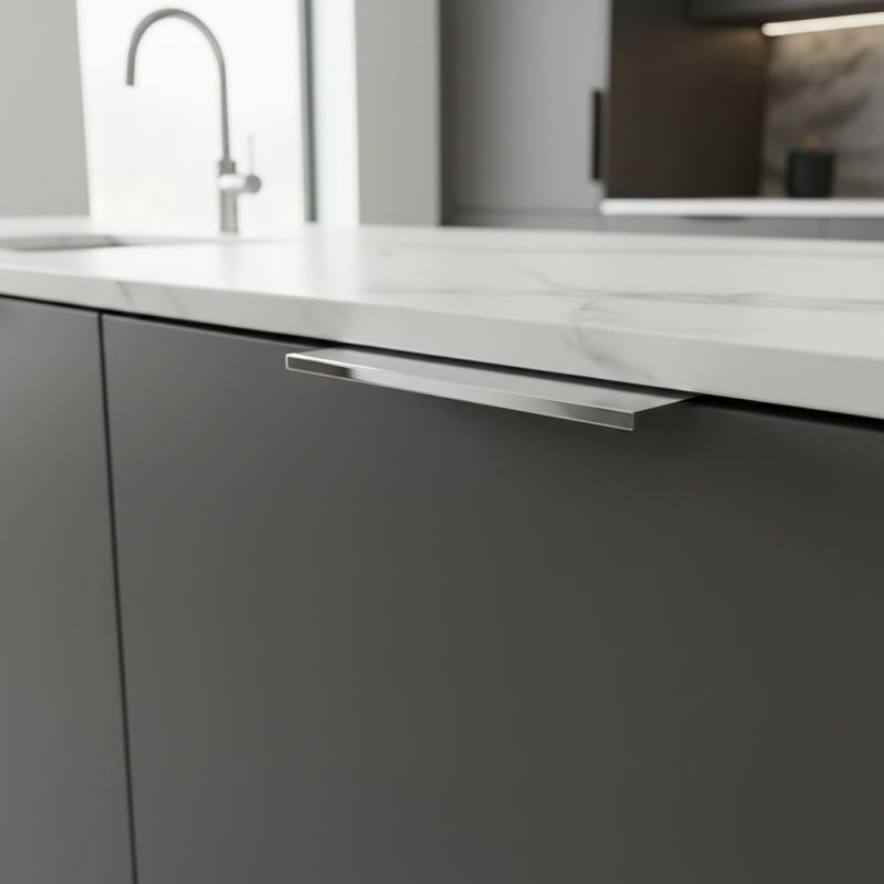 Je vyrobena z kvalitního kovu s odolnou matnou povrchovou úpravou, která je příjemná na dotek a zároveň odolává poškrábání. Tenký, nenápadný profil působí moderně a dokonale zapadne do kuchyně, koupelnového nábytku či obývacích sestav.