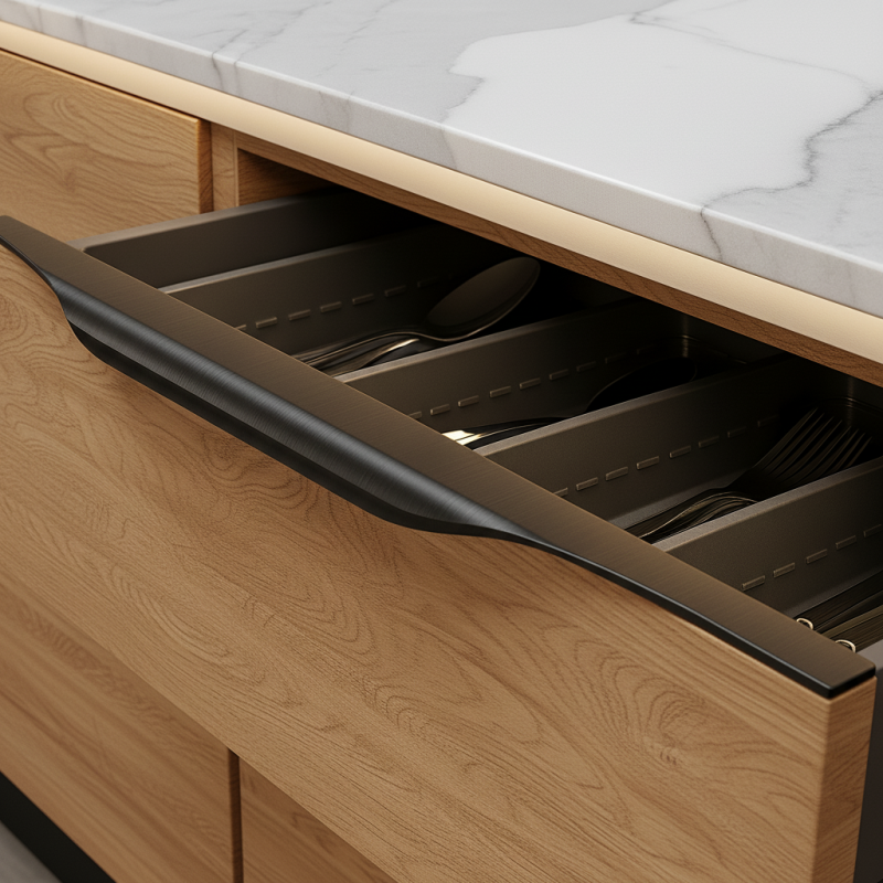 Elegantní zapuštěná úchytka LUTRA v provedení černá broušená je dokonalou volbou pro moderní interiéry, kde dominují čisté linie a minimalistický design. Úchytka se montuje přímo zapuštěním do hrany dvířek nebo zásuvky, čímž vytváří luxusní bezúchytkový vzhled.