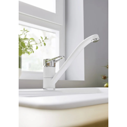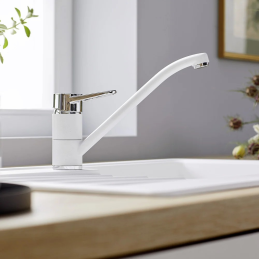 Baterie má ovládací páku umístěnou nahoře, což umožňuje snadné a přesné nastavení průtoku i teploty vody. Výtok otočný o 180° poskytuje dostatečný pracovní dosah při každodenním používání.