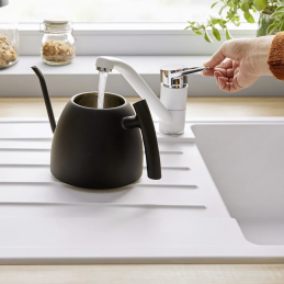 Blanco Wega II v provedení Silgranit-Look je moderní kuchyňská baterie, která dokonale ladí s granitovými dřezy Blanco. Je dostupná v několika barevných variantách (např. černá, antracit, bílá), díky čemuž vytváří harmonický celek s kuchyňskou zónou. Kompaktní rozměry ji předurčují zejména pro menší dřezy.