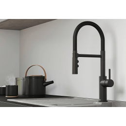 Flexibilní černá silikonová hadice – umožňuje snadnou manipulaci a dosah po celé ploše dřezu.