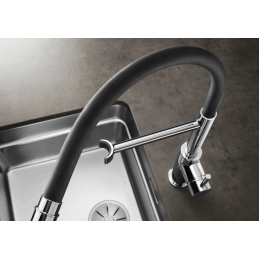 Blanco Catris-S Flexo představuje spojení klasických linií, poloprofesionálního vzhledu a vysoké funkčnosti. Flexibilní černá hadice ze silikonu poskytuje maximální rozsah pohybu, zatímco dvojitá sprška a magnetický držák přinášejí komfort při každodenním používání.