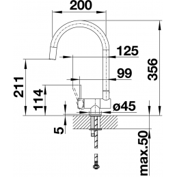 Optimální instalační výška – výtok vody padá přímo do středu dřezu pro maximální efektivitu.