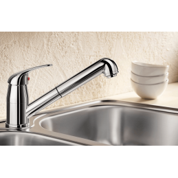 Blanco Daras-S je praktická a elegantní kuchyňská baterie s výsuvnou sprchou, která je ideální volbou pro menší a středně velké kuchyně. Díky výsuvné sprše poskytuje vyšší komfort při oplachování nádobí či čištění dřezu. Dostupná je v chromovém provedení i ve barevných variantách sladěných s granitovými dřezy BLANCO.