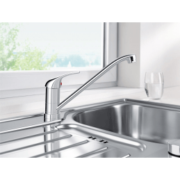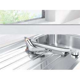 Blanco Daras-F je praktická a cenově dostupná kuchyňská baterie určená k montáži před okno. Díky sklopnému mechanismu nabízí jednoduché a rychlé ovládání – baterii stačí kolmo nadzvednout a položit na bok, aby nic nebránilo otevření okna. Je ideální volbou pro kuchyně, kde je dřez umístěn pod okenním parapetem.