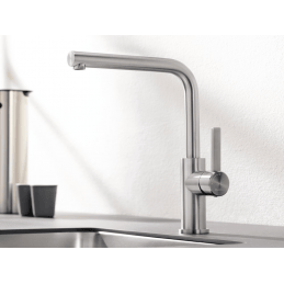 Blanco Lanora je moderní jednopáková kuchyňská baterie, která vyniká vysokou funkčností, precizním zpracováním a nadčasovým designem. Je vyrobena z kvalitní nerezové oceli a její charakteristický tvar těla ve tvaru písmene L zajišťuje zvýšený komfort při každodenní manipulaci v kuchyni.