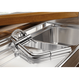 Model Linus-S-F je ideální volbou pro kuchyně s dřezem pod oknem, kde je potřeba sklopné řešení bez kompromisů v designu a komfortu. Díky výsuvné sprše, stabilní konstrukci a certifikované kvalitě značky BLANCO nabízí spolehlivé a elegantní řešení pro každodenní používání.