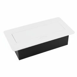 Moderní výklopná vestavná elektrická zásuvka určená k instalaci do pracovního stolu nebo nábytku (např. obývací stěna, kancelářský stůl či kuchyňský ostrůvek v bezpečné vzdálenosti od dřezu). Díky výklopnému mechanismu lze zásuvky jednoduše skrýt, když se nepoužívají, čímž zůstává pracovní plocha čistá a estetická.