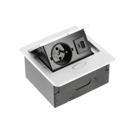 Kompaktní výklopná elektrická zásuvka BOX MINI v hliníkovém provedení nabízí moderní a ergonomický design vhodný pro instalaci do pracovního stolu, kuchyňské linky nebo nábytku (např. obývací stěna, kancelářský nábytek). Otevírání probíhá jednoduchým stisknutím tlačítka, zavírání ručním zaklopením.