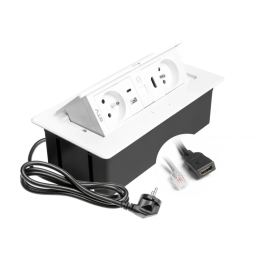 Moderní a ergonomická výklopná elektrická zásuvka určená k montáži do pracovního stolu, kuchyňské desky nebo kancelářského nábytku. Díky kombinaci silových, nabíjecích a datových portů je ideálním řešením pro kanceláře, domácí pracovny i open-space prostory.