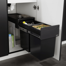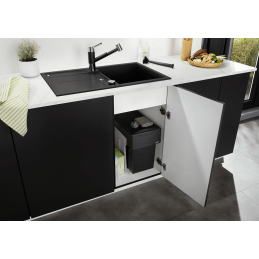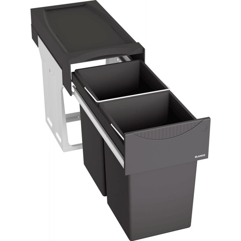 Blanco Botton II 30/2 je praktický košový systém určený pro zabudování do kuchyňské skříňky. Nabízí dvě nádoby s objemem po 15 litrech, což poskytuje dostatek prostoru pro třídění odpadu i v menších kuchyních.
