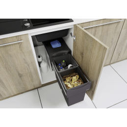 Dvě nádoby s objemem 2 × 15 litrů – ideální pro třídění odpadu (např. plast, papír, bio).