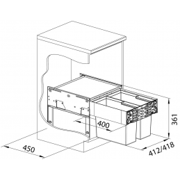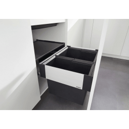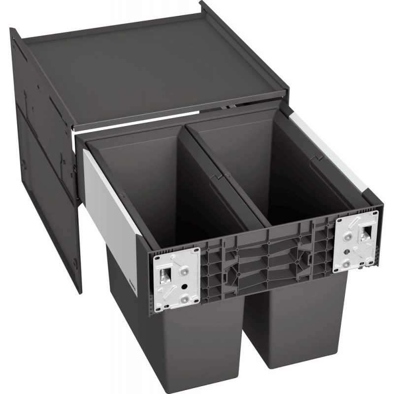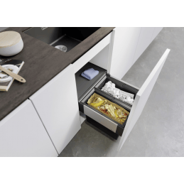 Systém je určen pro spodní skříňky se šířkou 45 cm a umožňuje pohodlné třídění odpadu v samostatných nádobách s praktickými úchyty.