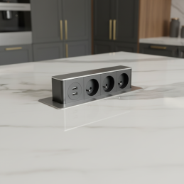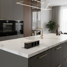 Elegantní a praktická výsuvná zásuvková jednotka HOPBOX je ideálním řešením pro kuchyně, kanceláře nebo pracovní stoly, kde je potřeba mít elektrické připojení vždy po ruce, ale zároveň skryté a estetické. Díky výsuvnému mechanismu se zásuvky objeví jen tehdy, když je potřebujete, a v zavřeném stavu vytvářejí čistou linii pracovní plochy.