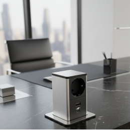 Moderní výsuvná zásuvka SQUARE UP v elegantním nerezovém provedení je praktickým řešením pro kuchyně, kanceláře či pracovní stoly. V zavřeném stavu působí minimalisticky a nenápadně – po stisknutí horní plochy se vysune nahoru a poskytne okamžitý přístup k elektrickému i USB napájení.