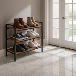 Udělejte pořádek s elegancí! Botník MAGNA spojuje funkčnost, styl a odolnost v jednom designovém kousku. Kombinace černého kovového rámu a dřeva v teplém odstínu vytváří moderní loftový vzhled, který dodá vaší předsíni, šatně či kanceláři útulnost a harmonii.